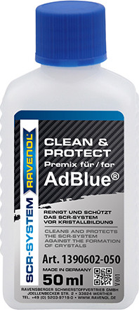 RAVENOL AdBlue® Clean & Protect Premix добавляется в бак для мочевины при каждой заливке AdBlue®. Флакона объёмом 50 мл достаточно на 12.5 л AdBlue®.
